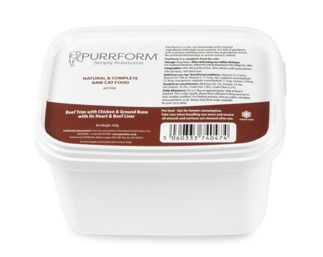 COMPOSITION: 40% Minced Beef Trim, 40% Chicken with Ground Bone, 10% Ox Heart, 10% Beef Liver.