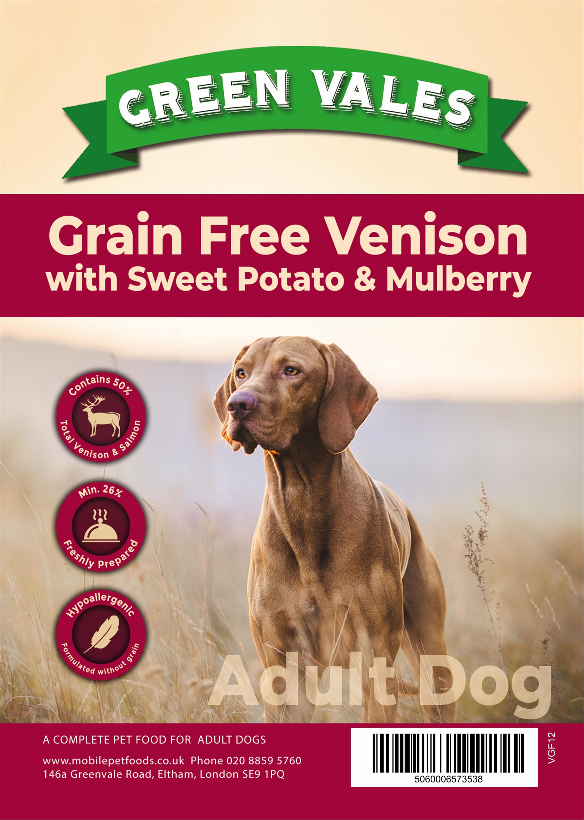 Green Vales Grain Free Venison Sweet Potato & Mulberry 2kg
