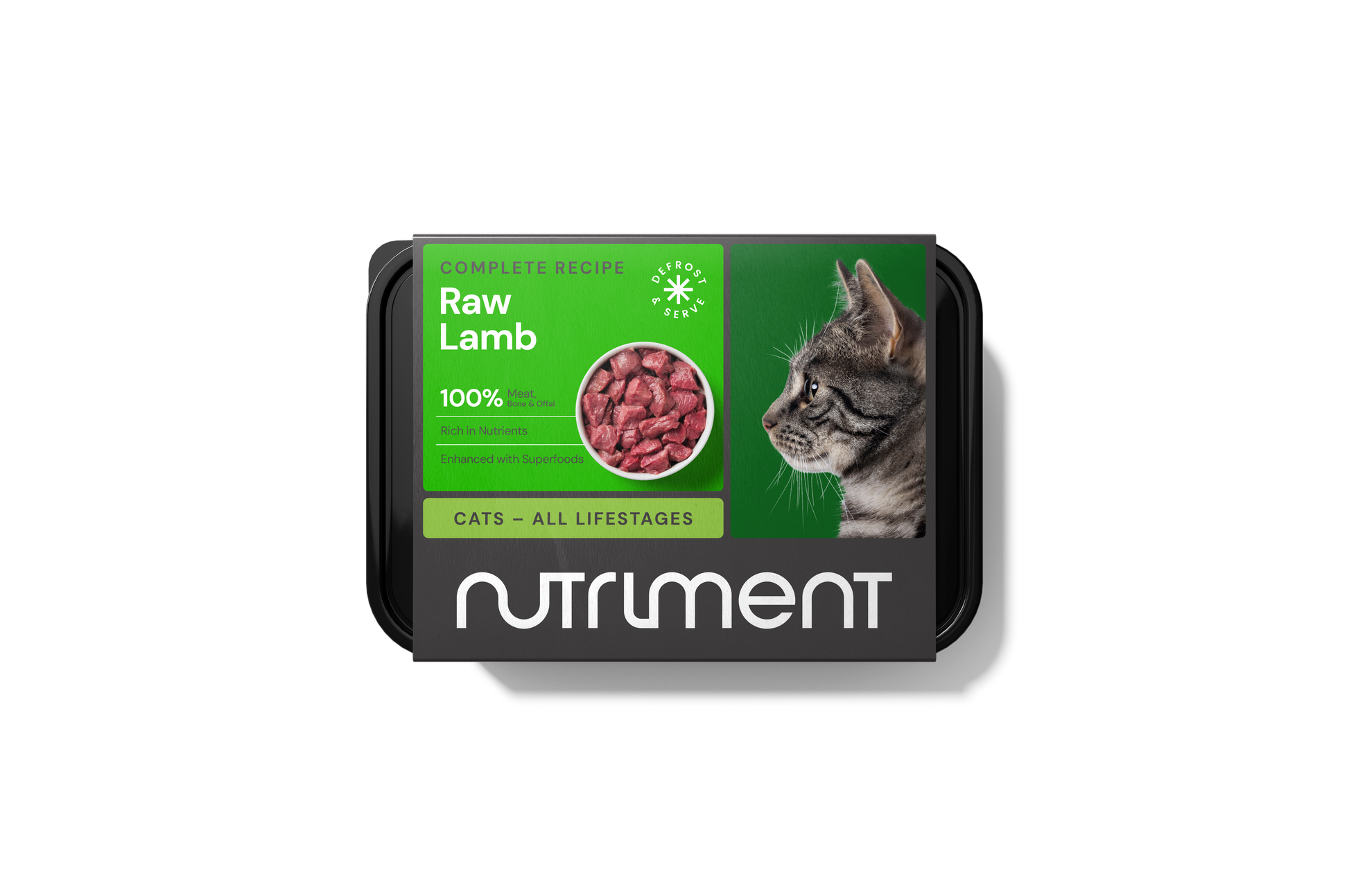 A complete food for cats. Suitable for all breeds. Contains 100% meat, bone, offal and superfoods