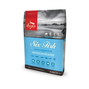 Inspired by the rich diversity of fish indigenous to canada�s pristine waters, orijen 6 fish is packed with saltwater and freshwater fish, caught-wild and then whisked to our kitchens as fresh and cold as the waters they came from. Surrounded by atlantic, pacific and arctic oceans, and blessed with vast unpolluted rivers and lakes, canada boasts a marine harvest perfectly suited to orijen�s philosophy of biologically appropriatetm cat foods from fresh regional ingredients. INGREDIENTS Fresh whole salmon (14%), fresh whole herring (12%), dehydrated salmon (12%), dehydrated herring (12%), dehydrated pollock (12%), fresh whole flounder (3%), fresh boneless walleye (3%), fresh boneless northern pike (3%), fresh boneless lake whitefish (3%), salmon oil (3%), herring oil (3%), chickpeas, red lentils, green lentils, green peas, pea fibre, canola oil, sun-cured alfalfa, alfalfa, dried kelp, pumpkin, butternut squash, spinach greens, carrots, apples, pears, cranberries, chicory root, dandelion root, chamomile, peppermint leaf, ginger root, caraway seeds, turmeric, rose hips, freeze-dried herring, freeze-dried hake, freeze-dried flounder.