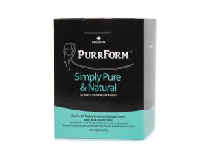 PURRFORM Duck with Turkey breast and ground bone with Duck Heart & Liver is a complete natural pet food for adult cats that contains nothing more than the ingredients listed.