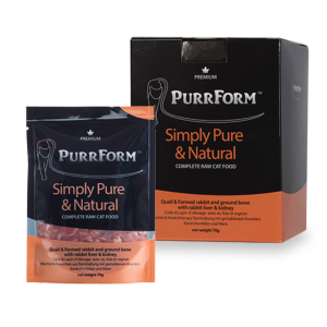 Purrform Premium Quail & Farmed Rabbit is a complete. high quality raw cat food. Quail is a good alternative to other poultry's such as chicken and turkey, being novel proteins (foods your cat would not normally be in contact with) your cat has an alternative meat to any allergies they may have.